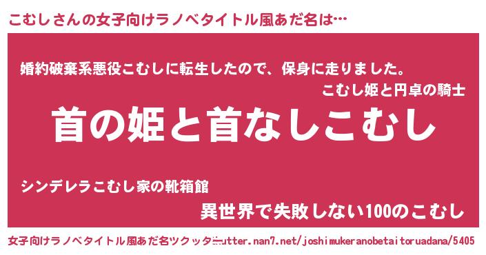 | ヘコむあだ名 | 『こむし(笑)』『こむにゅー』『牛乳』 |