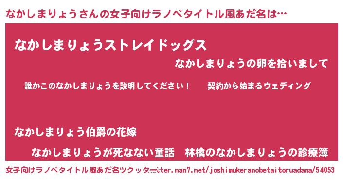 | 男性向けラノベタイトル風あだ名 | 『ナカシマリョウアートオンライン』 |