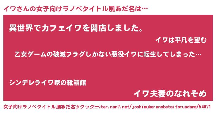 | 意味不明あだ名 | 『住所不定無職イワ(40歳)』『永久保存イワ』 |