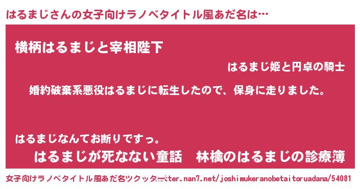 | 男性向けラノベタイトル風あだ名 | 『ハルマジスレイヤー』 |
