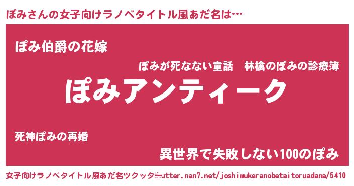 | 胡散臭い通販商品みたいなあだ名 | 『ガンによく効く高麗人参…その名も「ぽみ」』 |