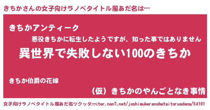 | 男性向けラノベタイトル風あだ名 | 『きちかという概念が存在しない退屈な世界 』 |
