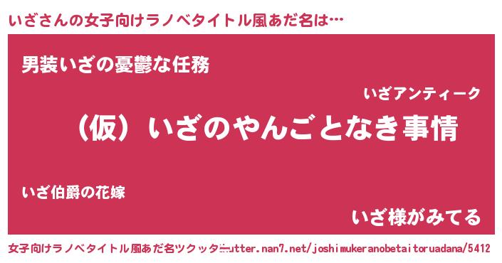 | 男性向けラノベタイトル風あだ名 | 『いざの憂鬱』『魔法科高校のいざ』 |