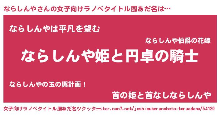 | 男性向けラノベタイトル風あだ名 | 『ならしんやの憂鬱』 |
