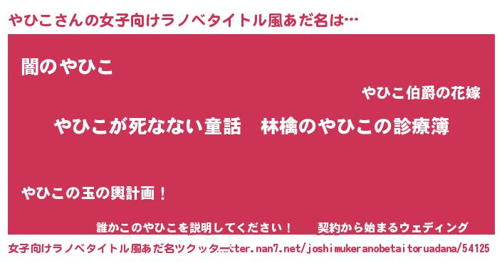 | 男性向けラノベタイトル風あだ名 | 『魔弾の王とやひこ』 |