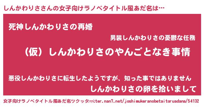 | 男性向けラノベタイトル風あだ名 | 『しんかわりさの憂鬱』 |