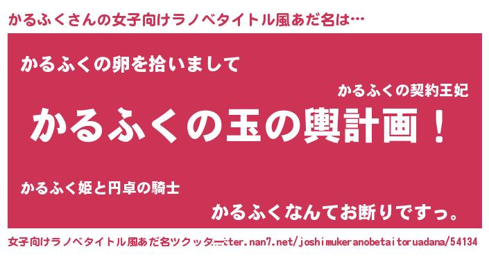 | 意味不明あだ名 | 『なめこ科かるふく属』『自称かるふく』 |