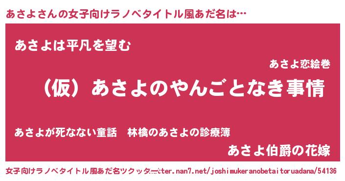| 胡散臭い通販商品みたいなあだ名 | 『必ず成功する霊験あらたかなお札…その名も「あさよ」』 |