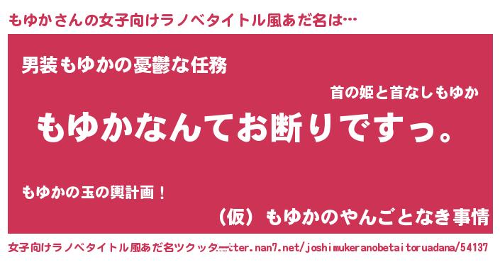 | 男性向けラノベタイトル風あだ名 | 『魔法科高校のもゆか』『もゆかの憂鬱』 |