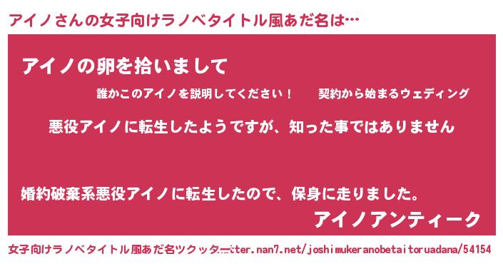 | 男性向けラノベタイトル風あだ名 | 『この素晴らしい世界にアイノを!』 |