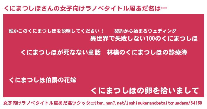 | 意味不明あだ名 | 『住所不定無職くにまつしほ(68歳)』 |