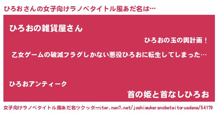 | 男性向けラノベタイトル風あだ名 | 『この素晴らしい世界にひろおを!』 |