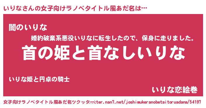 | 意味不明あだ名 | 『自称いりな』『眠気覚ましガムいりな味』 |