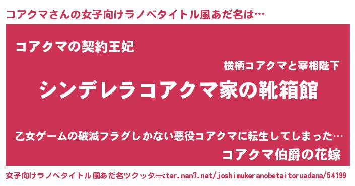 | 胡散臭い通販商品みたいなあだ名 | 『絶対に幸福をもたらす水素水…その名も「コアクマ」』 |