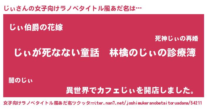 | 胡散臭い通販商品みたいなあだ名 | 『ハリウッド女優が絶賛した100年もののヴィンテージワイン…その名も「じぃ」』 |