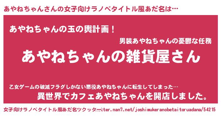 | ファンタジー風あだ名 | 『エターナルアヤネチャンー』 |