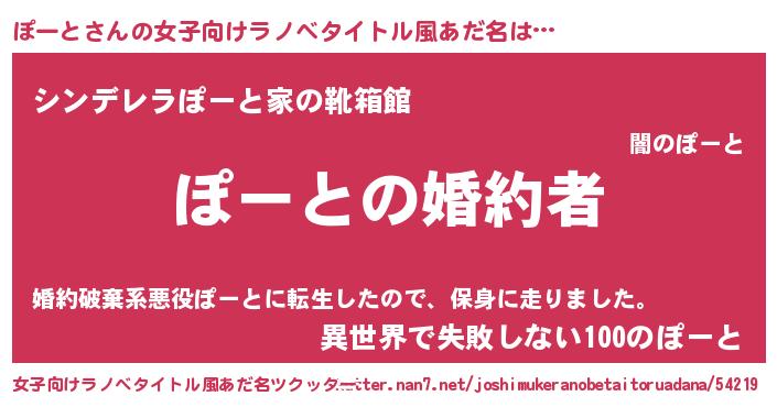 | 男性向けラノベタイトル風あだ名 | 『うちの娘の為ならば、俺はもしかしたらぽーとも倒せるかもしれない。』 |