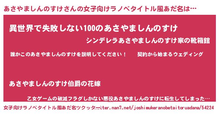 | ツイッター | あさやましんのすけさんのツイッターID『namakemono_man』 |