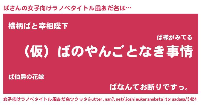 | 男性向けラノベタイトル風あだ名 | 『ばの憂鬱』『魔法科高校のば』 |