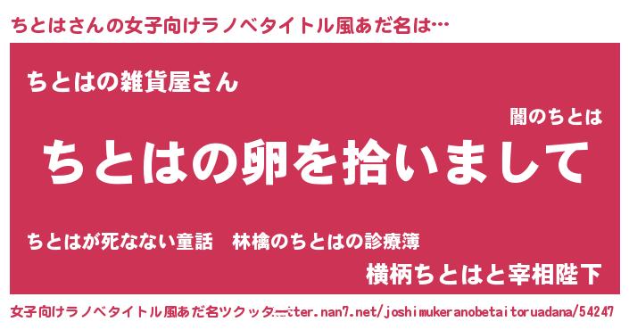 | 男性向けラノベタイトル風あだ名 | 『ちとはの嫁は女の子じゃないと思った?』 |
