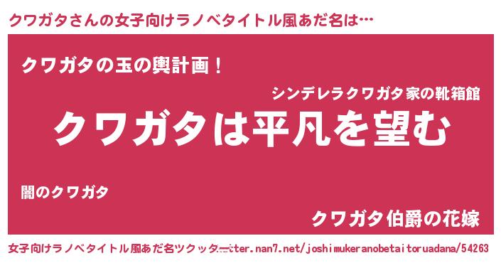 | 男性向けラノベタイトル風あだ名 | 『ダンジョンにクワガタを求めるのは間違っているだろうか』 |