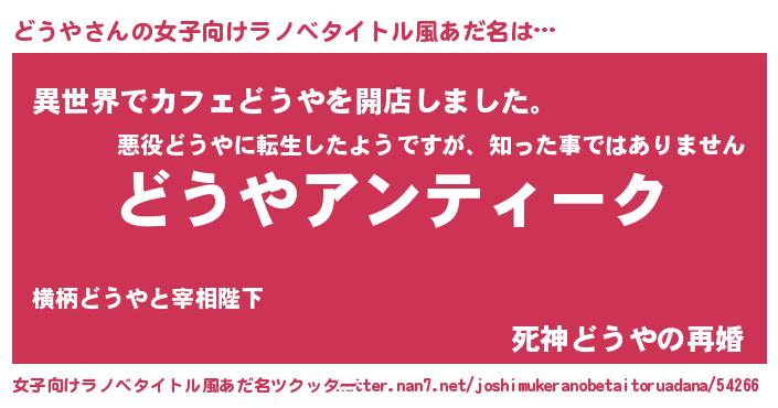 | 意味不明あだ名 | 『自称どうや』『永久保存どうや』 |