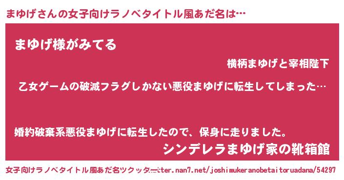 | 意味不明あだ名 | 『住所不定無職まゆげ(79歳)』 |