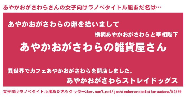 | ファンタジー風あだ名 | 『エターナルアヤカオガサワラー』 |
