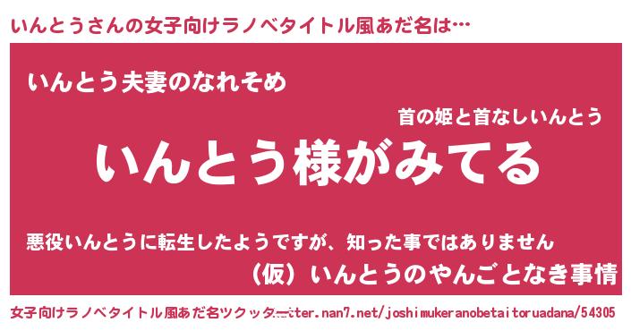 | 胡散臭い通販商品みたいなあだ名 | 『全米が絶賛したサプリメント…その名も「いんとう」』 |