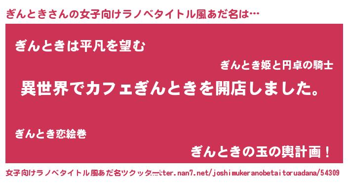 | ヘコむあだ名 | 『ぎんとき(苦笑)』『ぎんぷりん』 |