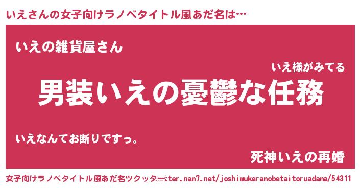 | 男性向けラノベタイトル風あだ名 | 『うちのいえが世界を掌握している!』 |