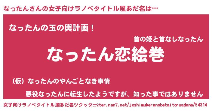 | 男性向けラノベタイトル風あだ名 | 『ノーゲーム・ノーナッタン』 |