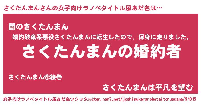 | 胡散臭い通販商品みたいなあだ名 | 『運命の人と巡り会える高級そうな絵画…その名も「さくたんまん」』 |