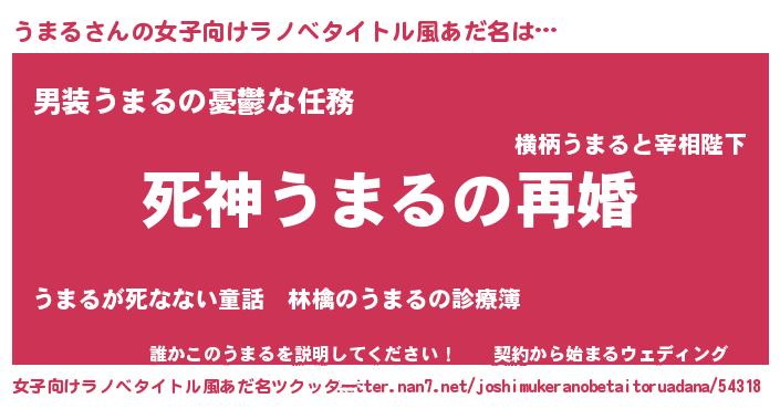 | 男性向けラノベタイトル風あだ名 | 『ノーゲーム・ノーウマル』 |