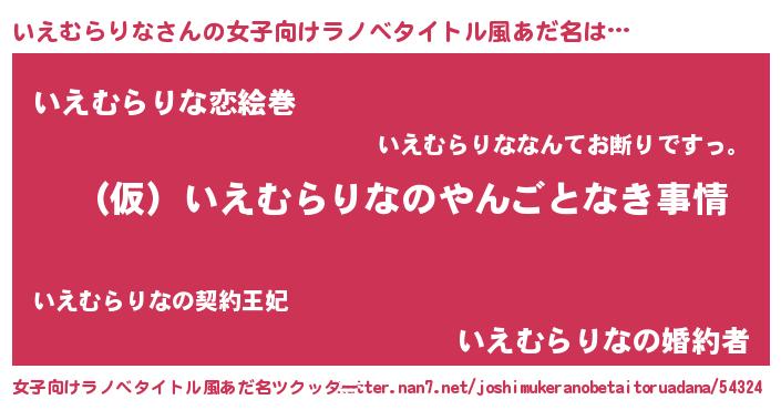 | 胡散臭い通販商品みたいなあだ名 | 『必ず成功する霊験あらたかなお札…その名も「いえむらりな」』 |