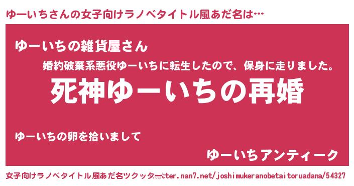 | ヒーロー風カッコイイあだ名 | 『慈愛の使者ゆーいち』『銀牙騎士ユー』 |