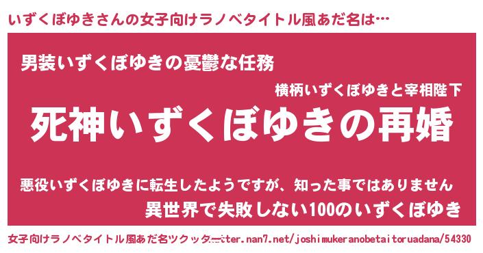 | ヘコむあだ名 | 『いずくぼゆき(遠い目)』『いずにー』 |