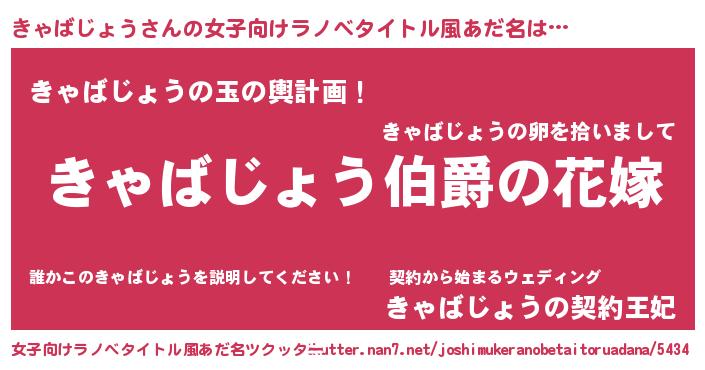 | ファンタジー風あだ名 | 『エターナルキャバジョウー』 |