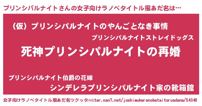 | 男性向けラノベタイトル風あだ名 | 『ノーゲーム・ノープリンシパルナイト』 |