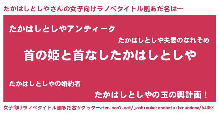 | 男性向けラノベタイトル風あだ名 | 『はたらくたかはしとしやさま!』 |