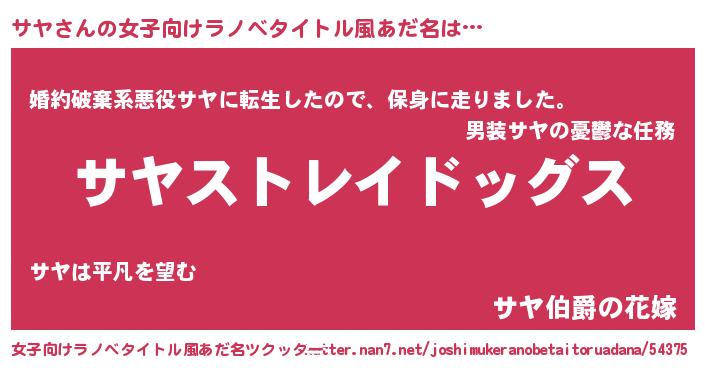 | 意味不明あだ名 | 『自称サヤ』『なめこ科サヤ属』 |