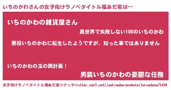 | 男性向けラノベタイトル風あだ名 | 『この素晴らしい世界にいちのかわを!』 |