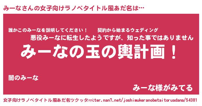| 胡散臭い通販商品みたいなあだ名 | 『モテモテ間違いなし水晶球…その名も「みーな」』 |