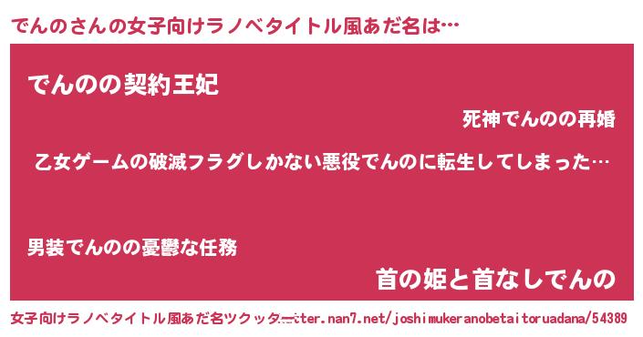 | 意味不明あだ名 | 『住所不定無職でんの(79歳)』 |