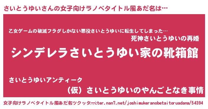 | 意味不明あだ名 | 『住所不定無職さいとうゆい(13歳)』 |