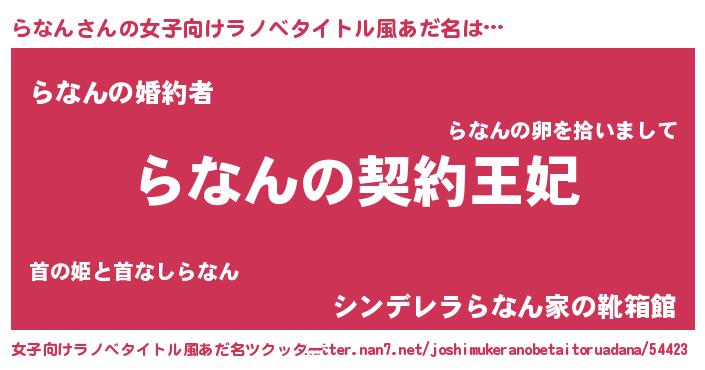 | ヒーロー風カッコイイあだ名 | 『ネオラナン』『ウルトラらなんマン』 |
