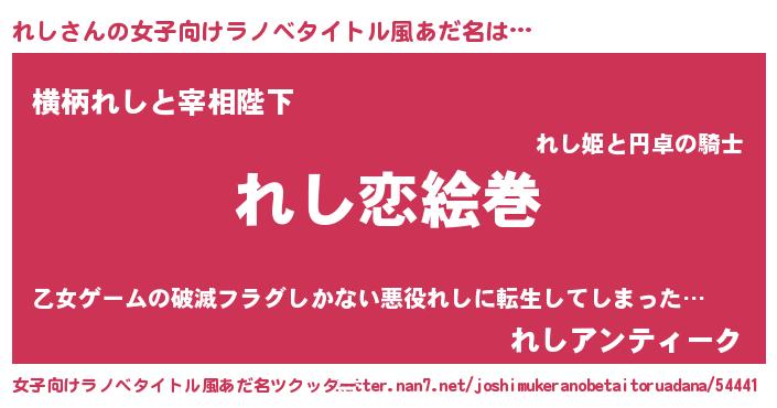 | 男性向けラノベタイトル風あだ名 | 『ノーゲーム・ノーレシ』『れしの憂鬱』 |