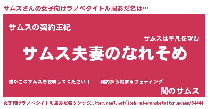 | ヘコむあだ名 | 『サムス(遠い目)』『サムぷりん』 |