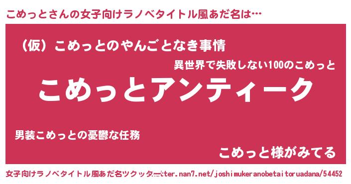 | 意味不明あだ名 | 『自称こめっと』『ペロリンこめっと』 |