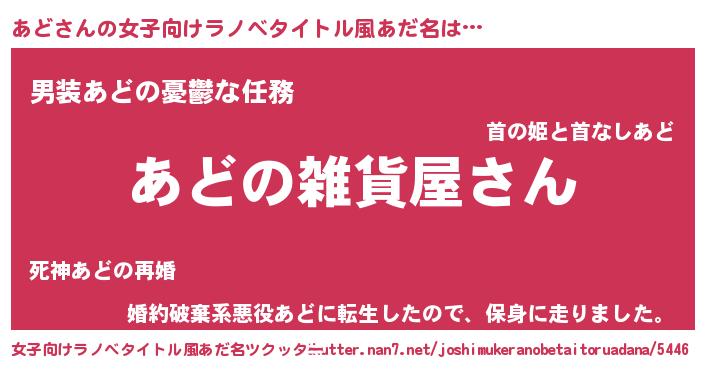 | 男性向けラノベタイトル風あだ名 | 『やはりあどの青春ラブコメはまちがっている 』 |